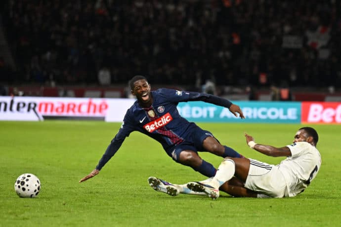 Rutscht PSG (im Bild Nuno Mendes) nach dem Pokal-K.o. nun auch in der Liga aus? (© LE PICTORIUM/Alamy Live News)