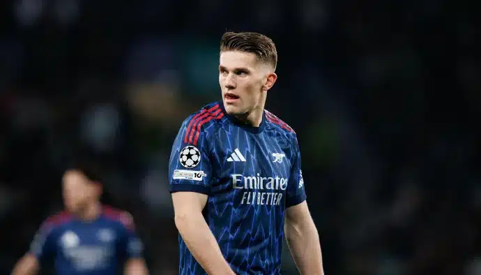 Bild: Für Arsenal um Angreifer Viktor Gyökeres steht am Mittwoch das Halbfinal-Hinspiel bei Atletico an. (© Maciej Rogowski/Ball Raw Images)
