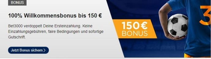 Bet3000 – 150€ Bonus auf die erste Einzahlung