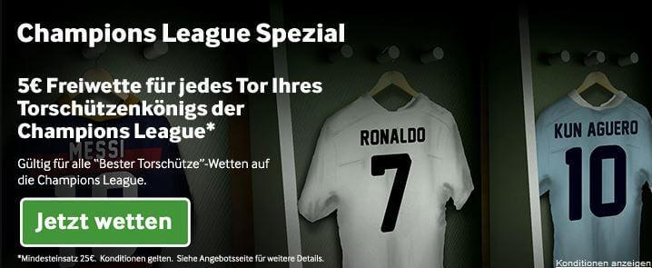 CL-Torschützenkönig Wetten: Betway zahlt 5 € für jeden Treffer!