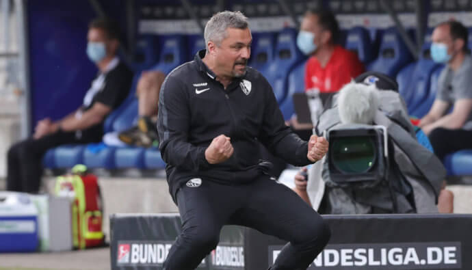 Zuletzt ein recht häufiges Bild: VfL-Coach Thomas Reis in Siegerpose (© imago images / Poolfoto)
